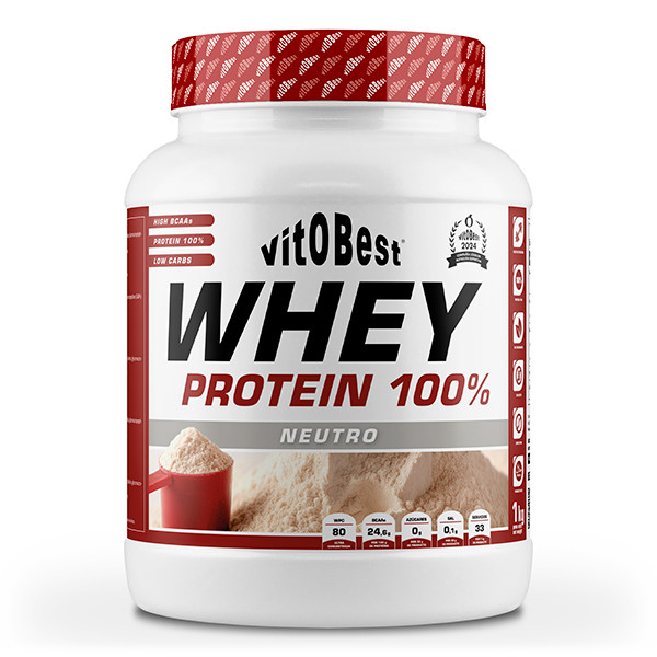 Whey Protein 100 %, de Vitobest®, es un suplemento elaborado con uno de los más reconocidos concentrados de proteína de suero del mercado WPC 80. No contiene ninguna otra mezcla de proteínas ni aminoácidos (es 100 % WPC 80). La utilizada en nuestra formulación es, además, una de las mejores proteínas sin desnaturalizar del sector.